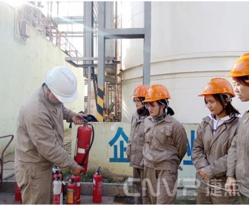 理论学习结束后,在厂区灭火救援教学演练区,公司应急救援队队员向参训人员讲解并演示了干粉灭火器和消防水带的使用方法,以及如何快速处置初期火灾。