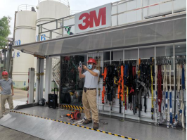 为提高员工的安全意识和技巧,将安全生产落到实处,降低职业健康风险,加强安全文化建设。8月6日上午,公司特别邀请了3M公司和浙江正安检测技术有限公司携带专用设备来公司现场开展“坠落防护和受限空间路演”活