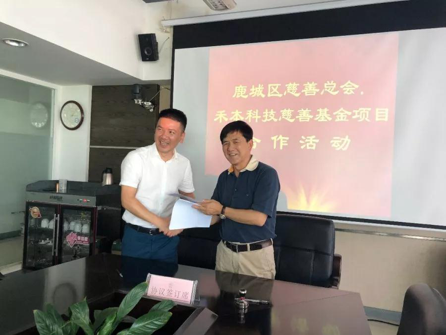 6月27日下午,鹿城区慈善总会澳门网上博彩下载慈善基金项目成立仪式在公司会议室举行。鹿城区慈善总会会长林瑞荣、副会长兼秘书长谷朝霞及公司总经理曾挺、工会主席陈小海等出席仪式。捐赠仪式现场,林瑞荣会长与曾挺总经