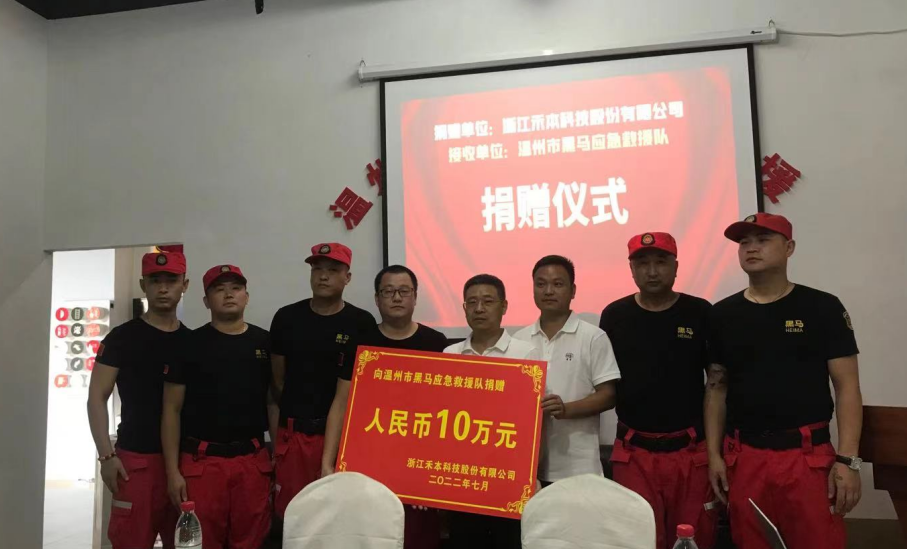7月26日下午,在黑马救援队会议室举行了澳门线上博彩官网向温州市黑马应急救援队捐赠10万元仪式!