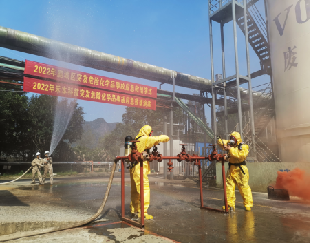 为了提高公司应急处置能力,保障公司持续稳定安全发展,保证员工和周围群众的生命安全及公司财产不受损失,6月23日下午, 集团公司开展了危险化学品事故应急救援演练。